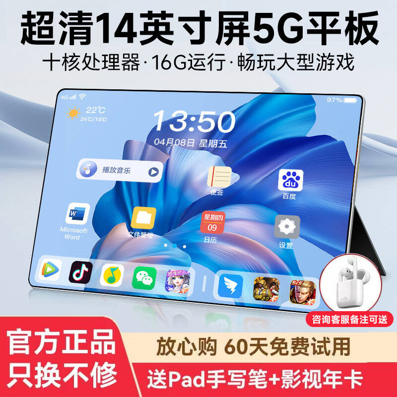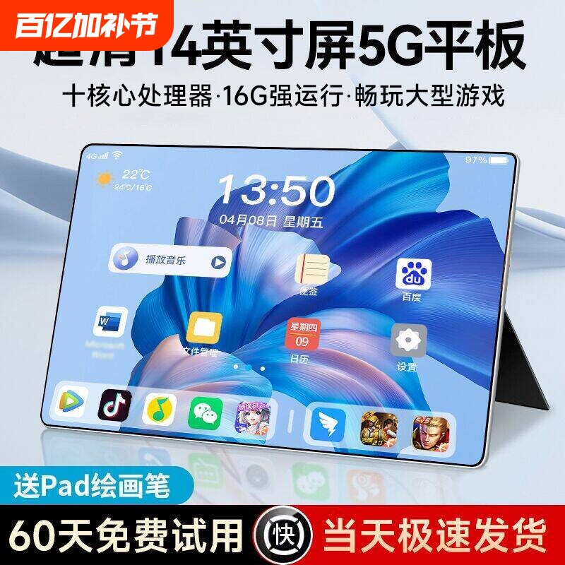 [Official Authentic Product] 2025 New High-Definition Full-Screen Tablet PC, Eye-Protection, Dedicated for Student Online Classes, Learning, Gaming, Entertainment, Office Work, Drawing, Postgraduate Entrance Exam Study, 2-in-1, Card Insertable